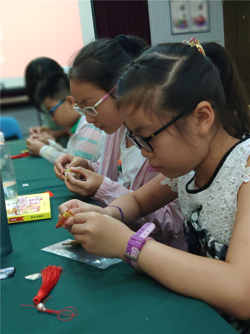 劝业路社区妇联开展“传承非遗技艺 巧手编织彩粽”夏令营活动