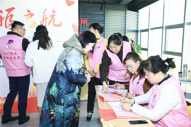 12月22日下午,江北新区大厂街道妇女儿童活动中心内暖意融融,身穿粉红色马甲的志愿者们在忙碌着,各方嘉宾热情交谈着,背景板上一个个家庭的情况和需求牵动着她们的心。由大厂街道妇联组织开展的“温情冬至 幸福启航”——巾帼红爱家暖心站揭牌暨大厂大爱温暖到家牵手结对共享交流会在大厂街道妇女儿童活动中心举行。