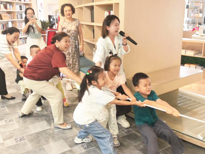 “吸力拔河”亲子环节将气氛推向高潮。家长和孩子分组使用吸盘绳子进行拔河比赛,大家紧握绳子、齐心协力,现场欢呼喝彩声不断。该游戏不仅展示了大气压的实际应用,也增强了亲子间的默契与协作。