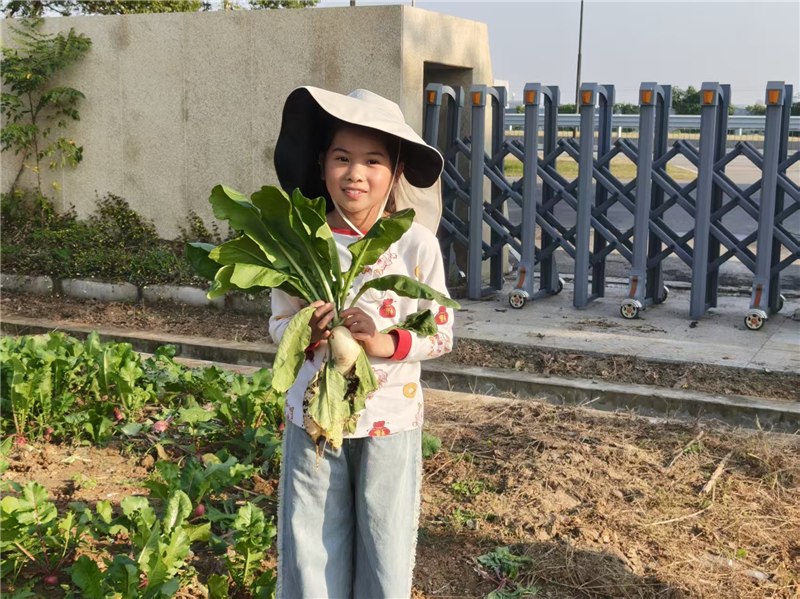 最受期待的“泥中寻宝——亲子趣拔萝卜”环节将活动推向了高潮。孩子们在家长的陪伴与协助下,兴致勃勃地踏入田间,亲手探寻、用力拔起一个个沾着新鲜泥土的萝卜。当萝卜破土而出的瞬间,孩子们脸上洋溢着惊喜与成就感。根据活动规则,每个孩子都收获了满满的劳动果实,体验了收获的喜悦与艰辛。