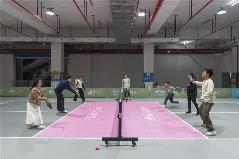 活动现场,来自各行各业的男女青年参加启动仪式,在交友游戏和匹克球运动中主动展现自我、增进相互了解。