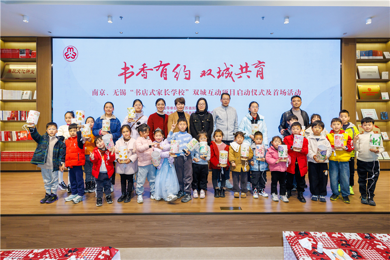 南京锦创集团执行总裁、楼宇妇联主席程苏苏发表致辞,无锡新华书店党总支书记、总经理黄茗磬发布了双城互动项目年度总体工作计划,两地书店将充分发挥特色,同频共振共建共享,打造沉浸式、互动式、共享式的家庭教育新场景。今年,两地书城将联动开展“同读一本书”亲子共读联动营、“父母成长营”家教资源共享汇、“绘本活起来”延伸创意实践营、“文脉润童心”公益传承成长行四大主题活动。同时将充分利用书店的咖啡区、阶梯讲堂、儿童区等不同空间,设计与之匹配的活动形式,强化“书店式家长学校”的沉浸式体验。会上同时发布了第一批“双城共读书单”,20本涵盖人物传记、科学探索、幼儿绘本等主题的图书,为不同年龄段的孩子提供了丰富的精神食粮。
