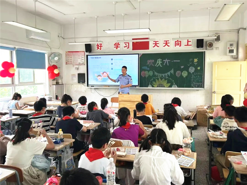 活动间隙,南京市公安局地铁分局警官还为孩子们进行了小学生防溺水安全教育,从全球溺水事故现状、小学生溺水事故特点、防溺水教育的重要性三个方面进行讲解,让孩子们知道溺水的概念以及溺水救治的措施,提醒小朋友不要独自外出游泳,远离存在安全隐患的设施场所,避免意外事故的发生。