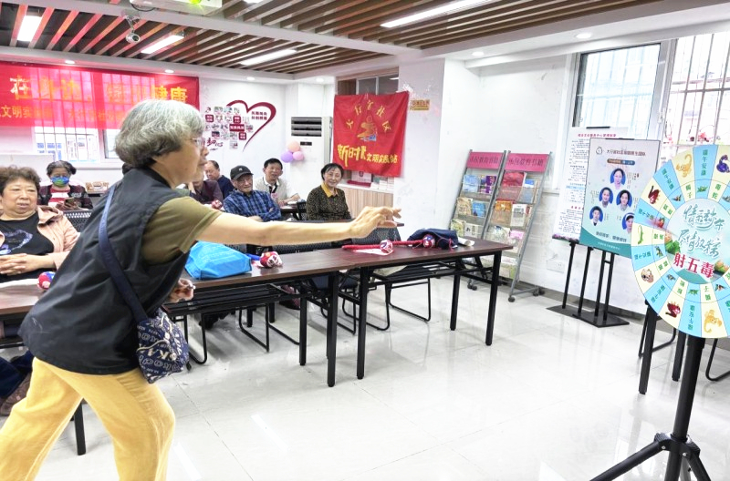 五月五,是端午,端午是中国传统节日,用节日表达对先人的思念,用民俗寄托平安健康的祝福。巾帼志愿者首先用简单的互动问答方式,带领辖区居民回溯端午节起源、习俗等,又邀请居民,用有趣的猜谜方式,让大家对习俗有了更深的了解。
