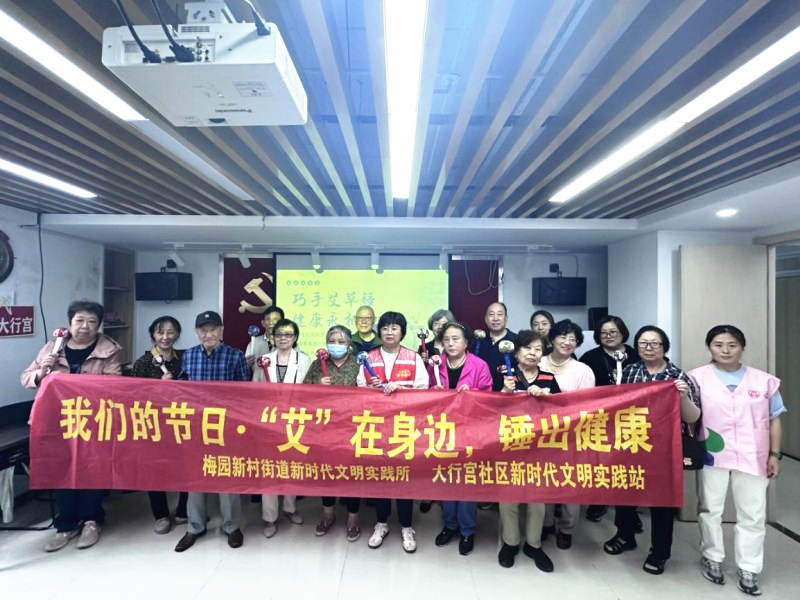 端午临中夏,时清日复长。在端午节来临之际,为进一步弘扬中华优秀传统文化,丰富社区居民的精神文化生活,营造温馨浓厚的节日氛围,玄武区梅园新村街道大行宫社区妇联联合大行宫社区新时代文明实践站开展了“我们的节日”家长学校课堂暨“‘艾’在身边,锤出健康”主题活动,以健康养生热点为契机,进一步帮助居民增强健康意识、感受手工制作的魅力。
