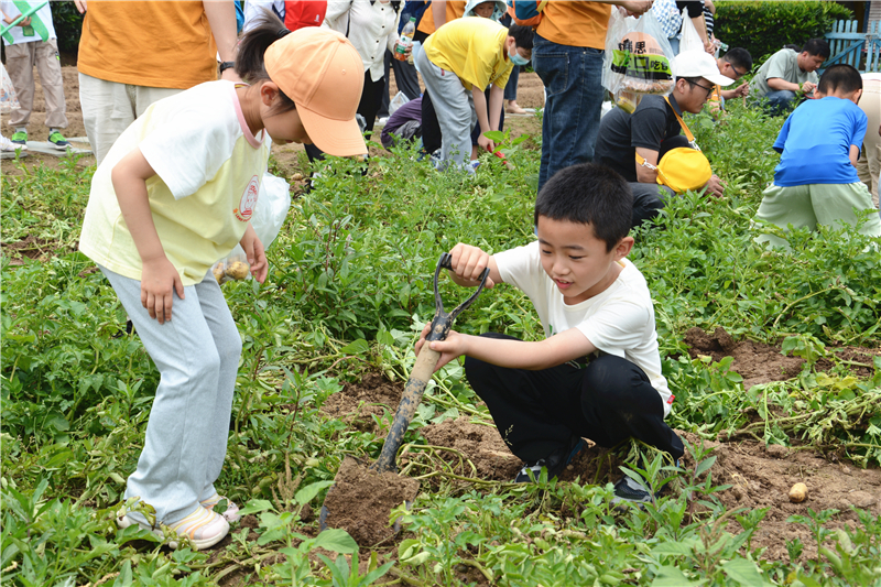 “我妈妈教过我选这个瓜。”在开心农场的采摘过程中,大家齐心协力,互相帮助。“这个瓠子很嫩的,做出来很好吃。”一位家长热心地帮助其他成员挑选新鲜的蔬菜。“看我挖的这个土豆有多大!”一位小朋友举着新鲜出土的土豆。就算沾了满手的泥土,他的脸上也洋溢着幸福的笑容。“这个是什么蔬菜啊?这个怎么吃好吃啊?”还有的小朋友对菜园充满好奇心,志愿者们也耐心解答他们的疑问。挥洒着疲惫但幸福的汗水,大家欢声笑语,满载而归。
