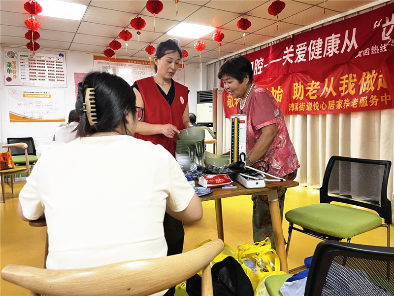 义诊环节,医生们为居民们进行了细致周到的口腔全面检查,对于居民的不同口腔情况给出了最为合适的诊疗建议和方案。对于发现的口腔问题,医生们耐心解释,并提供了专业的治疗方法。同时,活动现场还准备了牙刷、牙膏等口腔保健用品作为小礼品赠送给前来咨询的居民,还给大家进行了血压测量。