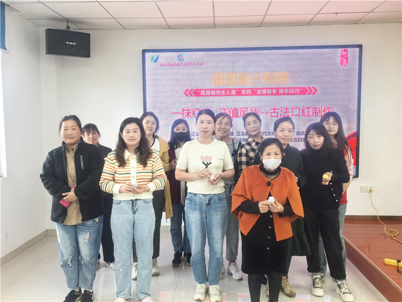 近日,江北新区盘城街道渡桥社区妇联开展“一抹红妆,正值风华——古法口红制作”活动。此次活动旨在让社区的妇女们体验传统手工艺的魅力,同时感受亲手制作口红的乐趣和成就感。