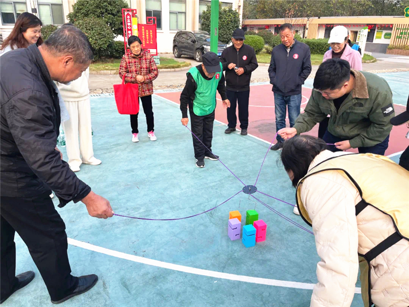 近日,江北新区沿江街道新化社区妇联组织辖区30位老年人,在社区党群服务中心广场开展了一场以“趣运动 悦生活”为主题的趣味运动会,旨在丰富老年人冬日生活,提升身心健康水平,增进邻里感情,激发基层党组织活力。此次趣味运动会特别针对老年人的年龄特点和健康状况进行“量身定制”,包含“你比我猜”“海底捞月”“合力搭建”“趣味保龄球”四个趣味项目。在活动现场,志愿者全程化身暖心向导,耐心细致地逐一为老人们讲解游戏规则,确保他们充分理解并沉浸在游戏带来的欢乐之中。