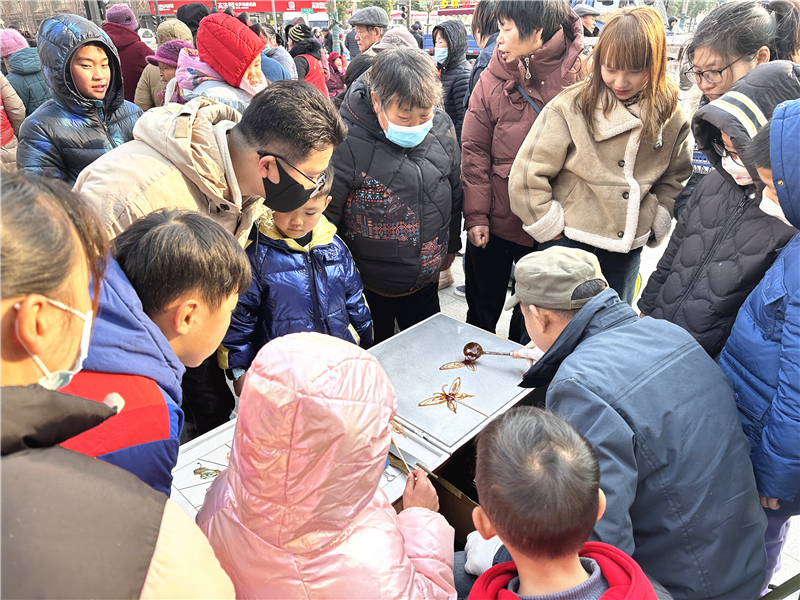 活动现场,健康义诊、磨刀理发、手作糖画、冰糖葫芦、面部彩绘和民族文化绘画让活动现场处处洋溢着欢快祥和的节日气息。