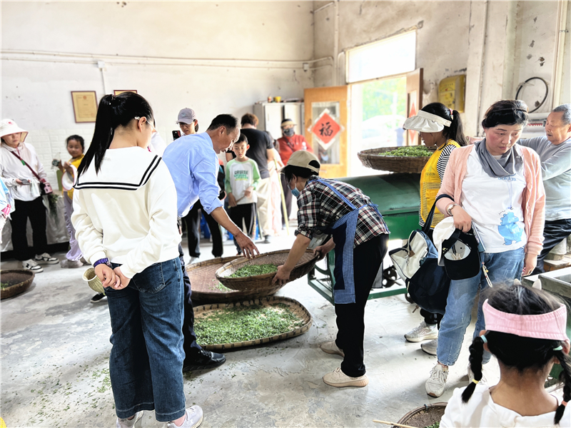 踏入绿意盎然的茶园,“茶园采青,指尖春意”环节拉开帷幕。孩子们化身小茶农,在茶园采摘嫩芽、学习制茶。志愿者讲述老一辈茶农辛勤种茶、制茶的故事,还推荐了陆羽《茶经》等经典读物,让孩子们在指尖翻飞间,领悟“一分耕耘一分收获”的道理,感受茶文化的千年底蕴。