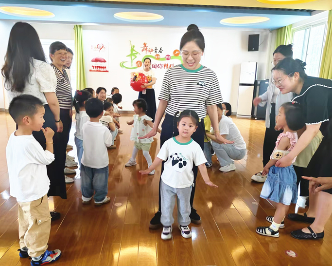 活动在《抓鸭子》音乐游戏中拉开序幕。孩子们和家长手拉手围成大圆圈,跟随音乐节奏模仿小鸭子走路、摇摆,并在“鸭妈妈”的指令下完成趣味互动。游戏不仅锻炼了孩子们的反应能力,还让现场氛围迅速升温。“孩子玩得特别开心,还交到了新朋友!”参与活动的李妈妈笑着说道。
