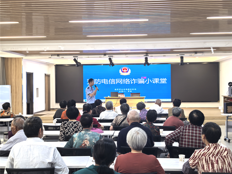 本次活动邀请溧水区公安分局反诈宣讲员罗峰进行反诈知识讲解。讲解中,罗警官结合真实案例拆解仿冒公检法、养老诈骗等6类典型诈骗手段,解读“三不一多”口诀(不轻信、不透露、不转账、多核实),强化个人信息保护意识,同时讲解遭遇诈骗后的报警流程、证据留存等关键应急处理步骤。居民积极参与互动,现场氛围浓厚。