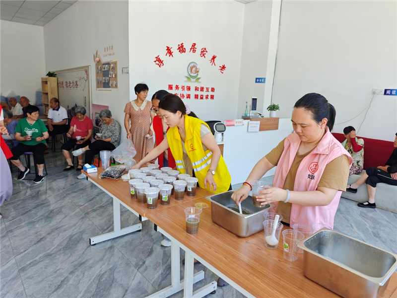 活动现场,志愿者将绿豆汤一碗碗盛出,递到村民手中。清甜的绿豆汤驱散了暑气,村民们喝着绿豆汤,脸上洋溢着满足的笑容。“这绿豆汤熬得真好,又甜又解暑,喝了浑身都舒服!”一位大爷竖起大拇指称赞道。