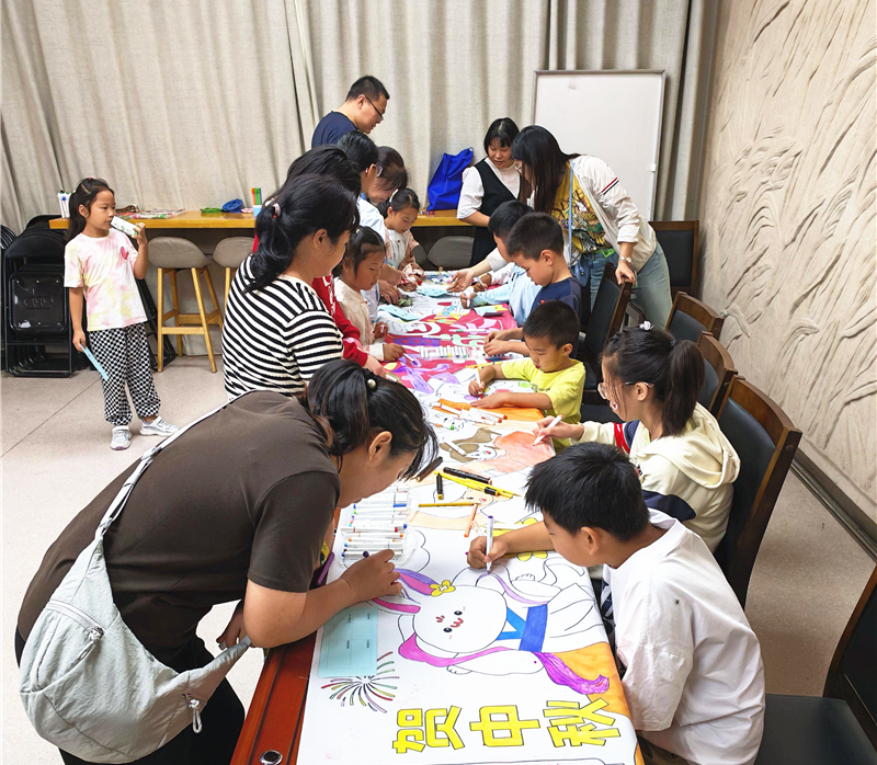 活动在《但愿人长久》《我和我的祖国》等悠扬乐曲与节日主题短片的循环播放中拉开帷幕。现场设置了“智趣区”“创想区”“欢乐区”及“惊喜区”四大互动板块。“智趣区-灯谜长廊”悬挂着融汇中秋诗词、国庆知识与生活常识趣味灯谜的特色灯笼,大小朋友踊跃竞猜,在互动中感受中华优秀传统文化的深厚底蕴;“创想区-童绘家国长卷”中,孩子们以“我与祖国共成长”为主题,共同绘制五米长卷,用画笔表达对家国的美好祝愿;“欢乐区-好运滚滚来”及“惊喜区-幸运转转乐”则笑声不断,亲子家庭协作完成任务,在游戏中增进邻里间的感情,收获惊喜与精美礼品。