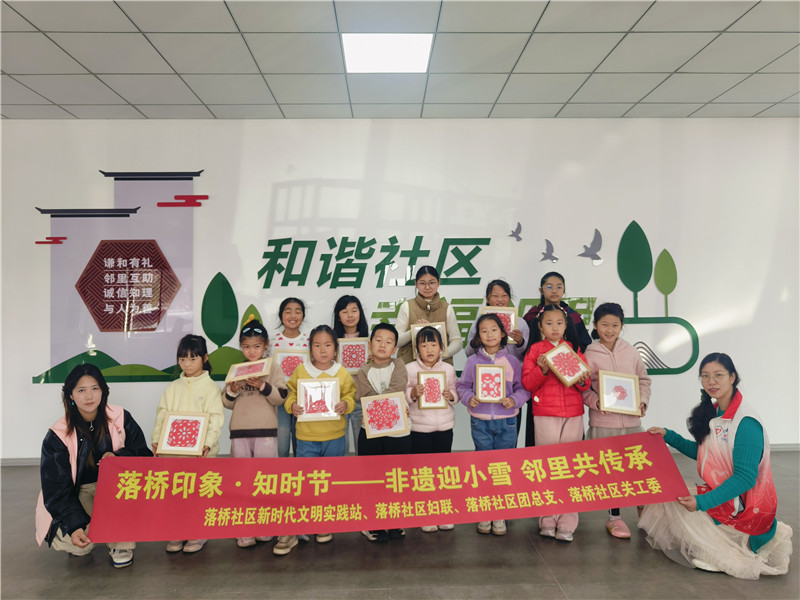 小雪至,冬意近。为弘扬中华优秀传统文化,增进邻里情感,近日,“落桥印象·知时节——非遗迎小雪邻里共传承”主题活动在江北新区落桥社区温情启幕,辖区亲子家庭齐聚一堂,在大手牵小手的亲密协作中,开启了一场浸润着传统文化馨香的节气之旅,于指尖翻飞间剪出冬日邻里情深与文化传承的动人篇章。