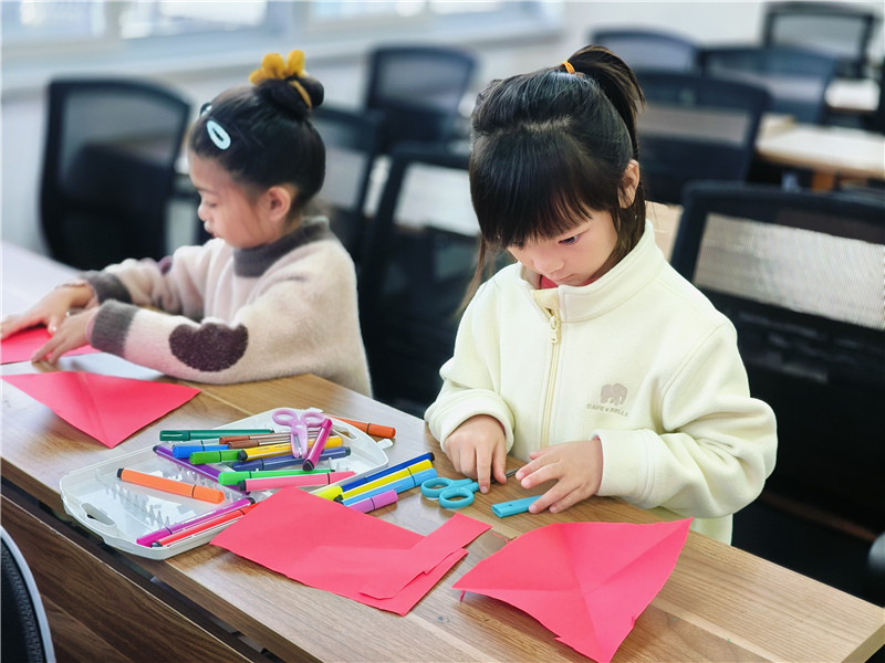 活动的重头戏——非遗剪纸‘窗花’体验环节将氛围推向高潮。在非遗老师细致耐心地示范下,简单的红纸瞬间幻化出雪花、福字、小动物等,充满冬日气息与小雪元素的灵动纹样。这一刻,剪刀的每一次开合,红纸的每一次翻折,都超越了单纯的手工,成为亲子间无言的爱意流转和非遗匠心在代际间默默传承的生动仪式。驿站内洋溢着专注与合作的暖流,一幅幅虽稚拙却饱含童真的窗花作品逐渐绽放于孩子们的手中,凝聚着家庭的温度与新生的创造力。