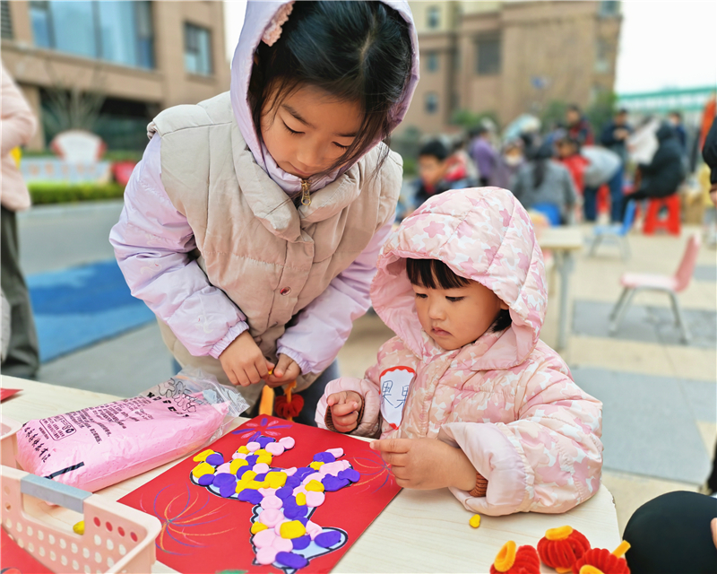亲子互动区充满欢声笑语,中海幼儿园的特色课堂为家长和孩子带来别样体验。趣味音乐律动小游戏让亲子间默契配合,共同享受欢乐时光。幼教老师还带领幼儿制作与马年相关的小手工,孩子们发挥创意,制作出一个个充满童趣的作品,现场洋溢着温馨的氛围。
