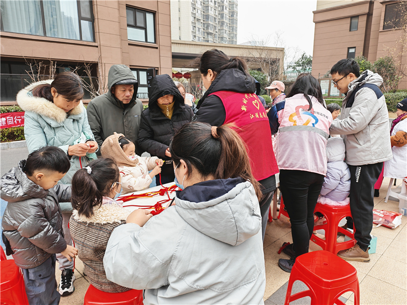 安全宣传区里,志愿者通过生动案例,向居民详细讲解高空抛物的危害,增强大家的安全意识。一旁的帮帮团手作坊也热闹非凡,居民们在志愿者指导下,用扭扭棒制作出精美的灯笼作品,在动手实践中感受乐趣。