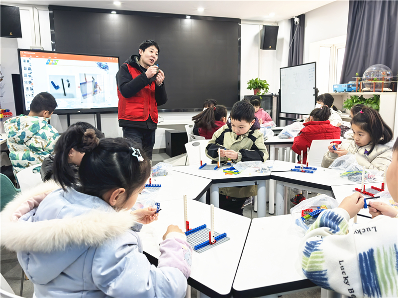 在理论学习的基础上,活动进入最受期待的动手制作环节。科普老师为每位儿童分发了制作材料,耐心指导大家组装、调试,一步步完成简易版失重训练仪的制作。孩子们认真操作、积极思考,遇到问题时主动向老师请教,在亲手实践中深化对科学原理的理解,体验动手创造的乐趣,当一个个专属的“失重训练仪”顺利完成时,孩子们脸上洋溢着满满的成就感。