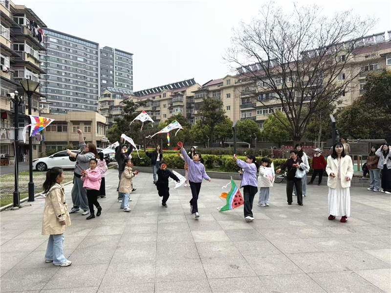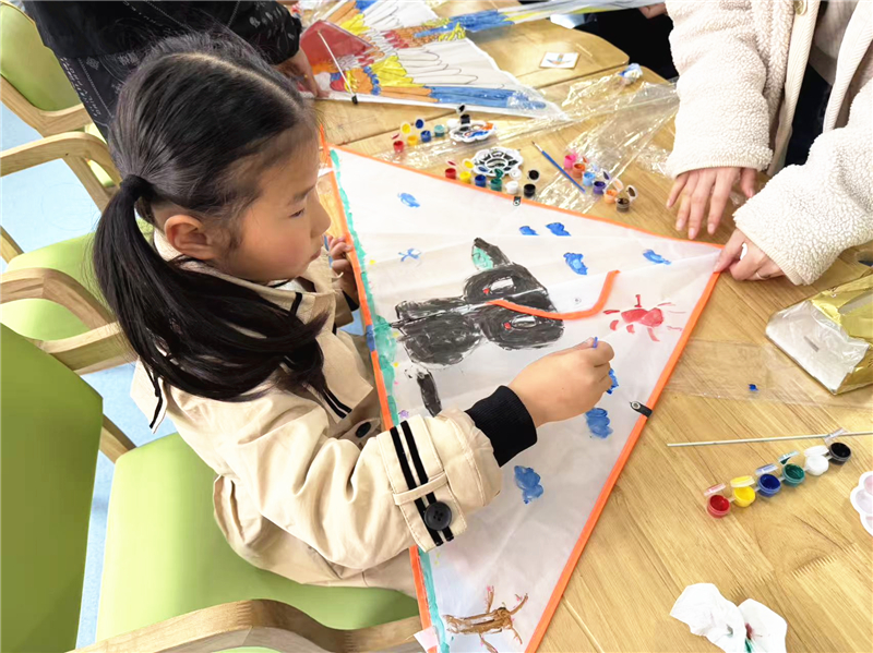 手绘风筝环节备受欢迎,志愿者为孩子们分发风筝坯料与彩笔,大家在家长的陪伴下尽情发挥创意,用画笔勾勒出花草、祥云等美好图案,将对先辈的缅怀与对生活的向往绘于纸鸢之上。完成创作后,大家来到户外场地一同放飞风筝,一只只色彩斑斓的风筝迎风起舞,既呼应了清明放纸鸢的民俗寓意,也让亲子时光更添欢乐。