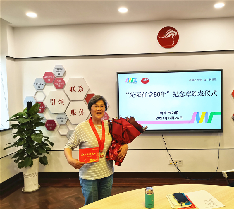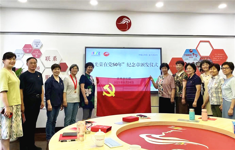 同日,市妇联在党员之家组织了“光荣在党五十年”纪念章颁发仪式,年轻党员向全体老同志、老党员宣读了《致机关离退休党支部全体共产党员的慰问信》,感谢她们为妇女事业的发展所做的努力和奉献。市妇联党组成员、市妇儿工委办主任王玉梅为老党员代表、原权益部部长王秀芝颁发“光荣在党五十年”纪念章,王秀芝高兴地表示:“50年前,在‘七一’前加入党组织非常光荣。今天在党的百年生日之际,领到纪念章倍感骄傲和自豪。”当天机关离退休干部党支部组织了“奋斗百年路 启航新征程”党日活动,回看了《离退休干部网上专题报告会》视频,观看了纪录片《理想照耀中国》,开展党史学习教育,大家纷纷表示离岗不离党,永远听党话,继续跟党走。