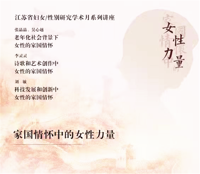 为贯彻落实习近平总书记关于妇女和妇女工作的重要论述,推动妇女性别研究学术繁荣。11月12日下午,南京市政府妇儿工委办公室联合江苏省性别平等示范基地东南大学人文学院线上开展了以“家国情怀中的女性力量”为主题系列讲座。