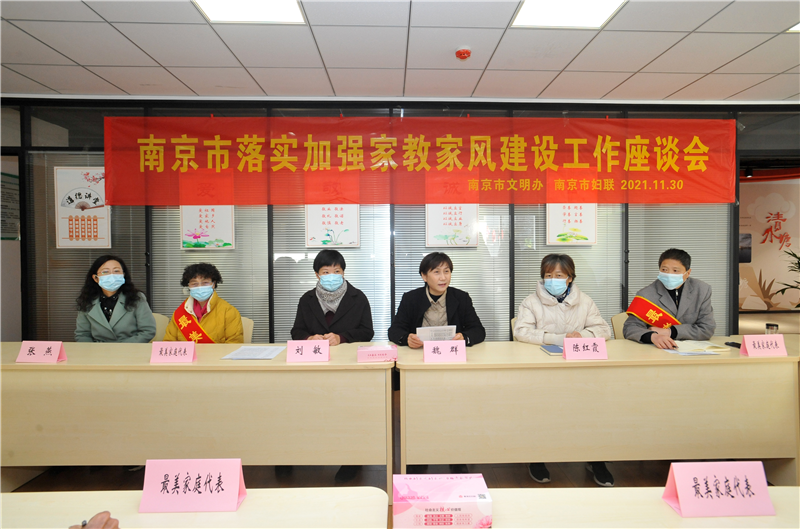 2021年11月30日,南京市文明办、市妇联在秦淮区扇骨里社区召开南京市落实加强家教家风建设工作座谈会。会议邀请各级最美家庭代表、市家教家风宣讲团成员、各级妇联工作人员等参加座谈。