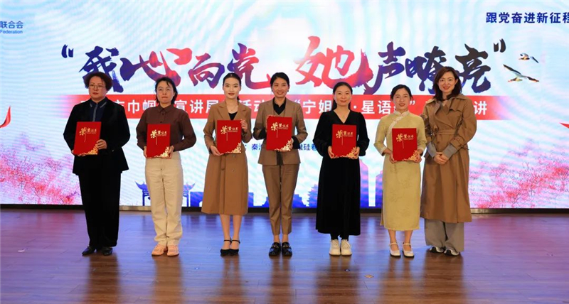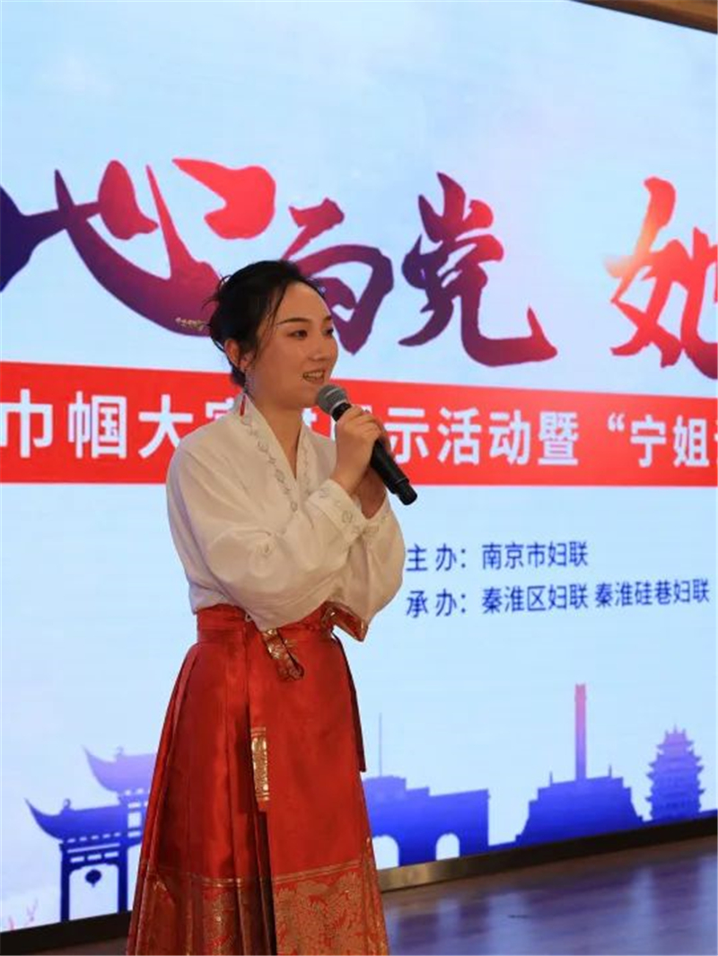 为进一步深入学习贯彻习近平新时代中国特色社会主义思想,集中展示南京各级妇联以“宁姐说”巾帼大宣讲为载体、创新开展女性思想政治引领的阶段性成果,为各级巾帼宣讲员赋能升级,3月22日,由市妇联主办,秦淮区妇联、秦淮硅巷妇联承办的“我心向党她声嘹亮”南京市巾帼大宣讲展示活动暨“宁姐说”宣讲品牌发布会在秦淮硅巷科技交流中心举行。市妇联党组书记、主席吴曦,秦淮区委副书记陈慧男,市妇联党组成员、副主席唐晓娟,市委干部理论教育讲师团副主任李昊田,市妇联宣传部部长李亚婷,秦淮区妇联党组书记、主席刘敏出席活动,各级妇联宣讲团(队)成员,各区分管主席、部门负责人、各行各业妇女代表等参加。