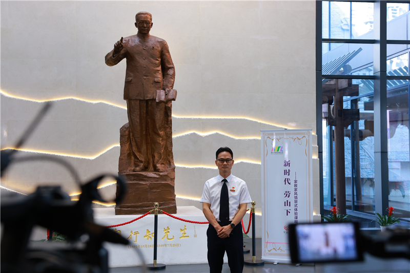 启动仪式后,与会代表一起沉浸在一场别开生面的互动课程中。市妇联联合陶行知纪念馆创新推出“新时代·劳山下”家风家教情景式体验课程,通过生动的情景再现和参与式体验,让与会代表浸润在陶行知先生家风家教的魅力之中,于潜移默化中感受家国情怀、清廉家风、传统美德和革命精神。