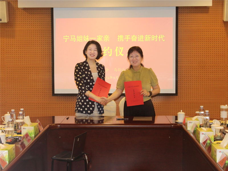 南京市妇联党组书记、主席吴曦和马鞍山市妇联党组书记、主席蒋露签订合作协议。