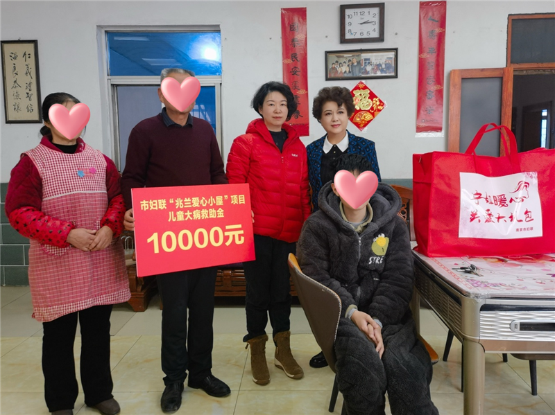 市妇联党组书记、主席吴曦带队开展大病儿童探访慰问,与市女企业家协会会长吴兆兰一起,走进江北新区罹患恶性肿瘤的睿睿家庭,深入了解家里的日常生活情况,送上“宁姐暖心”大礼包、年货、生活物资等慰问品和大病救助金1万元。在细心了解病情之后,尤其是得知睿睿后续还需要进一步治疗,经济压力很大的情况后,吴主席立即和江北新区对接后续资源,持续关心后期治疗和健康成长。吴兆兰女士也表示,将为孩子提供长期帮助。孩子的爷爷奶奶表示,孩子目前病情稳定,非常感谢得到了党委政府和妇联的关心。本次探访还慰问了雨花台区罹患婴儿痉挛症的大病儿童韵韵,在送上救助金和慰问品的同时,鼓励他们树立信心积极生活。