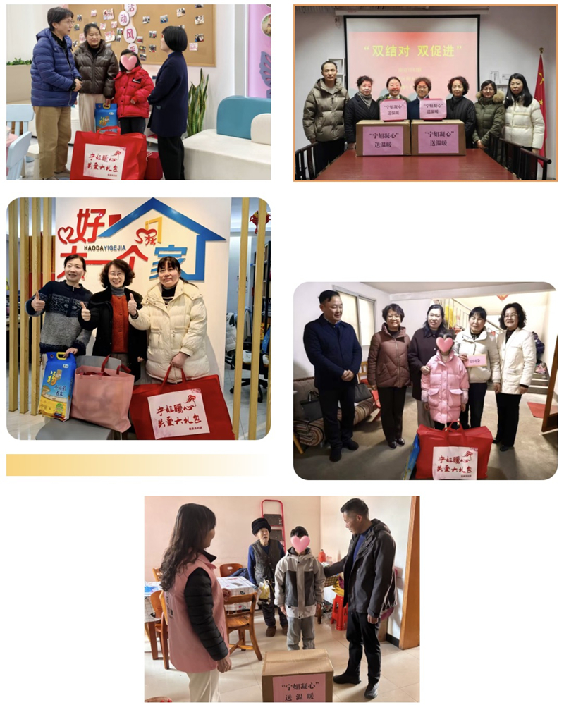 市区妇联上下联动,充分关注留守儿童、散居孤儿、事实无人抚养儿童及困境儿童家庭、困难妇女家庭和新就业群体家庭,共走访慰问千余户困难家庭和新就业群体家庭,发放宁姐暖心包、学习成长包、健康关爱包、温暖家庭箱、新春年货包、过冬羽绒服等新春慰问物资1600余份,把党和政府的关怀落到实处,把温暖送到困难群众身边。