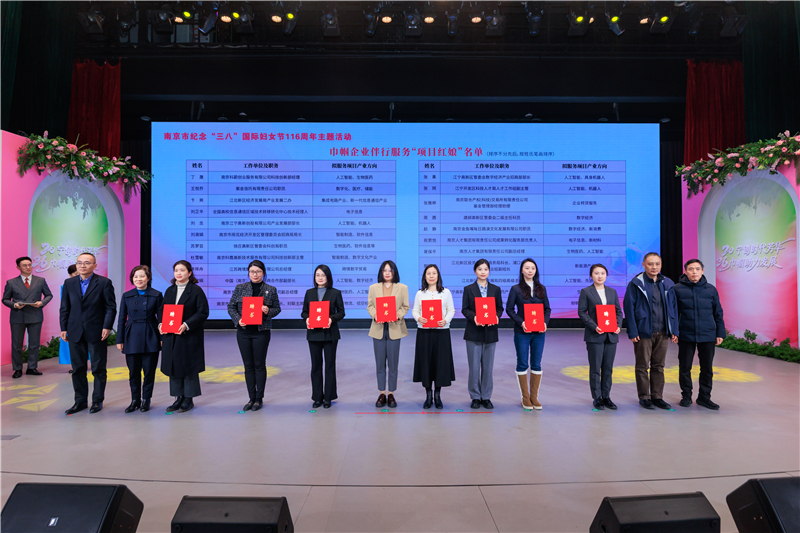 市委副秘书长易兵、市政府副秘书长郑晓明、市委人才办、市委社会工作部、市科技局、市工信局、市人社局、市农业农村局、市商务局、市税务局、市总工会、团市委、市科协、东南集团(人才集团)、南京紫金投资集团、南京文旅集团、南京新农集团、建设银行等单位领导以及市妇联领导班子参加活动。