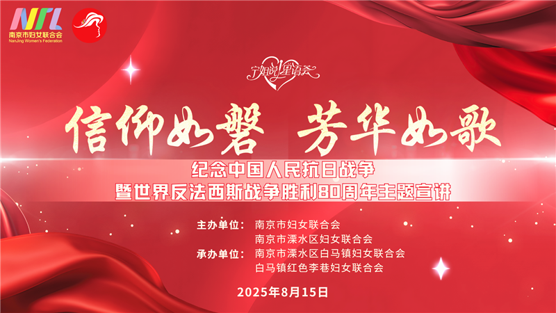 信仰如磐,芳华如歌。为纪念中国人民抗日战争暨世界反法西斯战争胜利80周年,近日,一场由南京市妇联、溧水区妇联共同主办的主题宣讲走进溧水红色李巷。市妇联党组成员、副主席唐晓娟,溧水区妇联党组书记、主席季玲,全市各级妇联干部代表、红色巾帼志愿宣讲团成员代表、妇女群众代表参加。市妇联机关第四党支部与溧水区妇联党支部“党旗映初心”主题党日活动在此同步联动开展,旨在从伟大抗战精神中汲取前行力量。